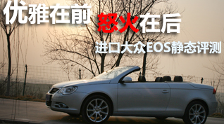 优雅在前 怒火在后 进口大众EOS 3.2静态评测 车天下汽车网 发表于:2011-01-21 06:21 如果不是与其亲密接触过几天,我想我绝对不会把黎明女神如此美丽典雅的名字与一台如此暴躁的敞篷跑车联系在一起。在大众家族中,EOS所给人的印象更像是一款非主流产品,不仅外形上脱离了大众循规蹈矩的设计,整体风格也另类很多,这一点从硬顶上的天窗便可见一斑。