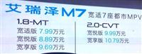 2015上海车展:艾瑞泽M7售7.99万起 车天下汽车网 发表于:2015-04-20 11:34 [车天下新车上市]在2015上海车展上,奇瑞旗下全新七座mpv车型艾瑞泽m7正式上市,此次新车共推出1.8l和2.0l两种动力共五款车型,新车售价区间7.99-10.79万元。 -