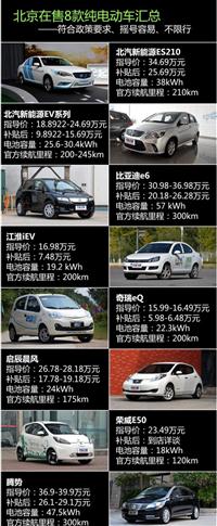 摇号容易/不限行 北京在售8款纯电动车 车天下汽车网 发表于:2015-04-03 06:30 [车天下新闻]4月2日北京市人民政府发布了2015年4月11日至2016年4月10日,继续实施工作日高峰时段区域限行交通管理措施(下文简称:限行),其中“纯电动小客车(以可充电电池作为唯一动力来源、由电动机驱动的小客车)不受限行措施”最为引人关注。 -