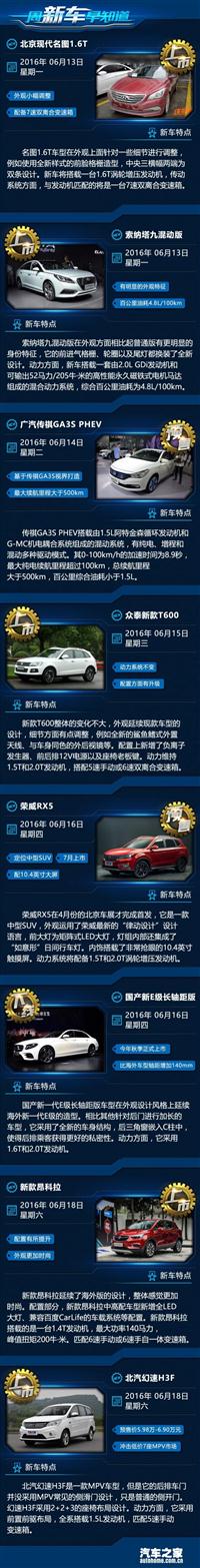 新款昂科拉/荣威RX5等 一周新车早知道 车天下汽车网 发表于:2016-06-12 08:31 [车天下新闻]大家好,又到了《一周新车早知道》的时间了。 -
