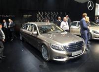 2015日内瓦车展:迈巴赫S 600 Pullman 车天下汽车网 发表于:2015-03-03 06:31 [车天下新车首发]在刚刚开幕的日内瓦车展上,奔驰发布了全新迈巴赫s600pullman,其车身长度达到了6499mm,轴距更是达到4418mm(迈巴赫s级轴距为3365mm),也使其成为s级家族中身材最大的产品,这也为它带来了充足的车内空间。 -