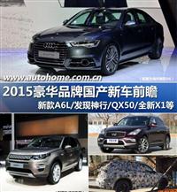 新款A6L等 2015年豪华品牌国产新车前瞻 车天下汽车网 发表于:2015-02-27 01:30 [车天下新闻]在春节前,我们曾为大家带来了《十大豪华品牌2014年销量排行》文章,我们看到2014年豪华品牌在国内的发展还是十分迅速的,此外我们还可以看到大部分品牌都将产品的国产化作为品牌发展中极其重要的一项工作。 -